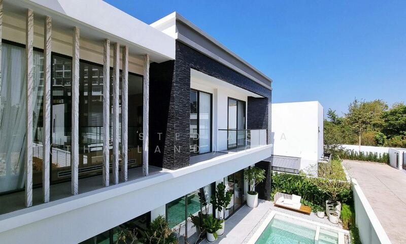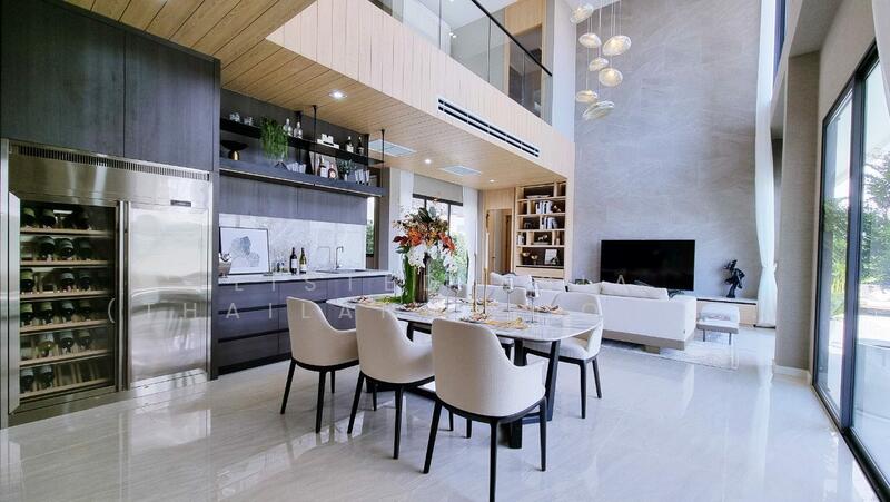 The villas are thoughtfully crafted with open-plan living areas, boasting soaring ceilings and expansive sliding glass doors that flood the interiors with natural light while offering seamless views of the private swimming pools and beautifully landscaped gardens. Designed for convenience and style, the homes include state-of-the-art European kitchens, separate Thai kitchens for traditional cooking, and guest restrooms to accommodate visitors. The master bedrooms serve as personal sanctuaries, complete with walk-in closets, spa-like en-suite bathrooms, and premium finishes that enhance the sense of luxury.