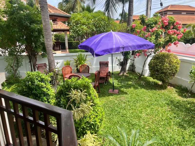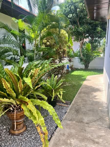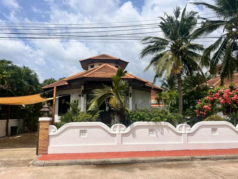 The property is located in the Manora Village project in Nong Kae, Hua Hin, Prachuap Khiri Khan. The neighborhood presents a peaceful residential setting with similar homes and tropical landscaping. Residents enjoy a quiet area in the Hua Hin district with a relaxed coastal atmosphere.