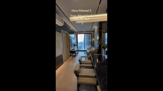 High-rise condominium project in Ekamai MARU Ekamai 2 is a freehold project developed by Major Development Public Company Limited located at Sukhumvit 63, Prakanong Nua, Wattana, Bangkok. The building is a 32-storey highrise building on a land area of 1-2-77 rai. The total number of units is 333 units, consisting of 5 types of rooms: 1 smart bedroom (29.0 - 30.0 1 bedroom (32.5 - 35.5 sq.m.), 2 bedrooms (54.0 - 60.5 sq.m.), 1 bedroom duplex (41.0 - 42.0 sq.m.) 2) Duplex (45.0 - 76.0 sq.m.) MARU Ekamai 2 is under construction and is expected to be completed in 2020. MARU Ekamai 2 includes facilities such as lobby, fitness room, yoga room, swimming pool, heated swimming pool, kids pool, music practice room, karaoke room, sky garden, co-living space, Co-Creation Space, Co-Kitchen, Lounge, Elevator, Parking both normal and automatic, Electric car spot The security system is complete with Access Key Card, security guard. 24-hour CCTV MARU Ekamai 2 is within easy reach of shopping centers such as Big C Supercenter, Ekamai Branch (300 m), Major Cineplex Sukhumvit (700 m), Gateway Ekamai (750 m), Top MARU Ekamai 2 is also close to hospitals and educational institutions such as Sukhumvit Hospital (900 m), Samitivej Sukhumvit Hospital (2.0 km), Ekamai International School (1.5 km) , Bangkok University Kluaynamthai Campus (1.7 km) MARU Ekamai 2 is located on Sukhumvit 63 between Soi Ekamai 2 and Ekamai 4, just 500 meters from Sukhumvit Road, which is convenient for both public transportation and private car. It is close to BTS Ekkamai 550 meters and can be connected to MRT at Asoke Station only. 3 stations only If you use private car, you can take the Sukhumvit Road to get to Thonglor, Asoke Nana, Siam, connect to Rama 4, Sathorn, Phetchaburi, Rama 9, Ratchadaphisek. And to the east on Nuch Udom Suk, Bangna, Srinakarin, Samutprakarn is the same.
