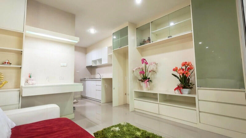 - 1 ห้องนอน, 1 ห้องน้ำ, 1 ห้องนั่งเล่น และโซนครัว, 1 ที่จอดรถ