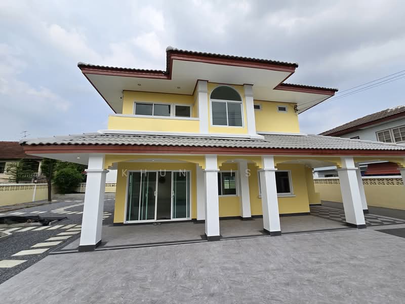 Top-tier materials: Aluminum doors and windows throughout, real stone kitchen countertops (3,000 baht per sq.m.), electric remote gate.