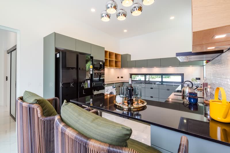 Set against the breathtaking backdrop of the mountains, this modern 3-bedroom, 4-bathroom pool villa in Thap Tai, Hua Hin, offers a perfect blend of luxury, privacy, and comfort. Spanning 320 sq.m, the villa features a spacious open-plan living and dining area, designed to make the most of natural light and mountain views. The stylish kitchen is fully equipped, making it ideal for both family meals and entertaining guests.