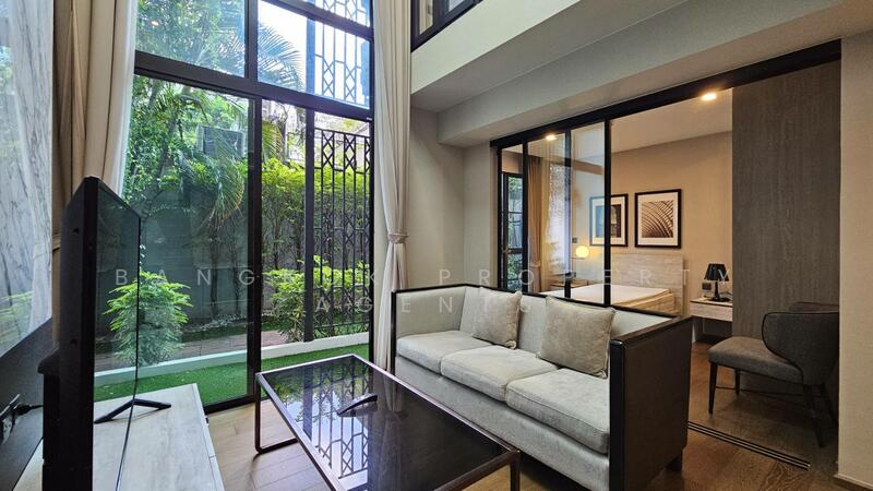 Floor-to-ceiling windows offer garden views and fresh daylight.