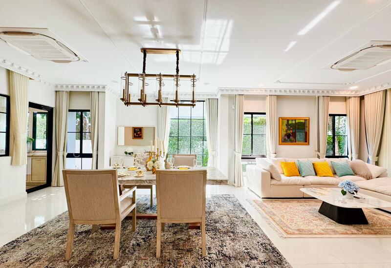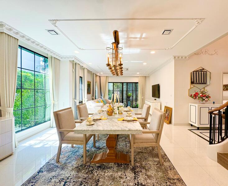 NANTAWAN Rama 9, New Krungthep Kreetha Intersection, luxury detached house on land of more than 100 sq m in the New Krungthep Kreetha Intersection zone from Land&Houses. New Krungthep Kreetha, or Srinakarin-Romklao Road, is another location where many super-luxury housing projects have been launched in recent years. However, we haven't seen a project like NANTAWAN Rama 9, where every unit is on a plot of land exceeding 100 square wah, like the one on New Krungthep Kreetha. Therefore, the main selling point here is the land size and the large usable area of 302-449 square meters. When combined with Land&Houses' strength in emphasizing the lush atmosphere within the project, anyone looking for a home in this area should definitely pin this place as another option