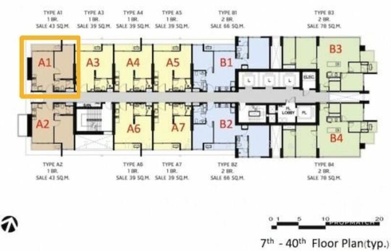 Floor size of this unit at Nara 9 by Eastern Star is 45 sqm.