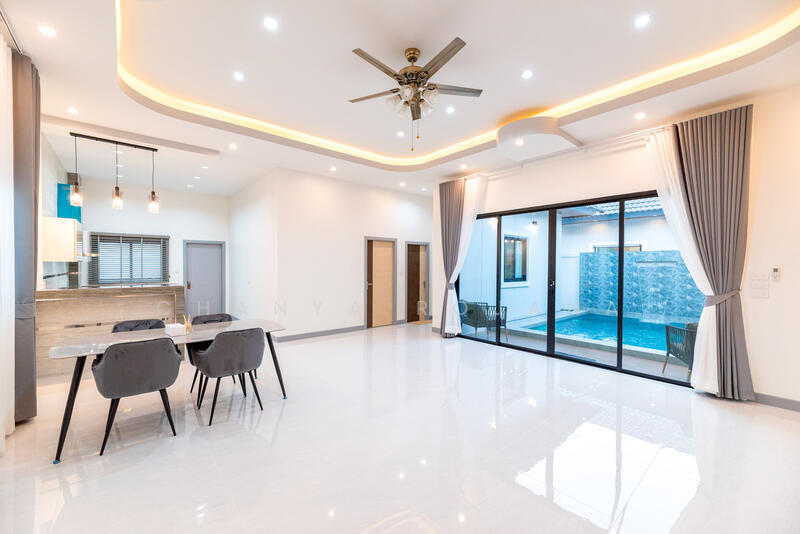 Discover this modern single-storey pool villa with a perfectly designed living space, located in the peaceful Huay Yai area of Pattaya. Surrounded by nature and a serene atmosphere, this home is ideal for both residential living and as a private holiday retreat. Conveniently located near local shops and community facilities, and only 20 minutes from Pattaya city — perfect for families or anyone seeking a relaxing home in Pattaya.