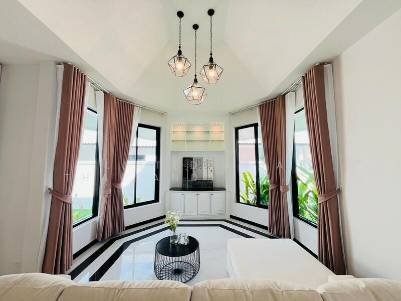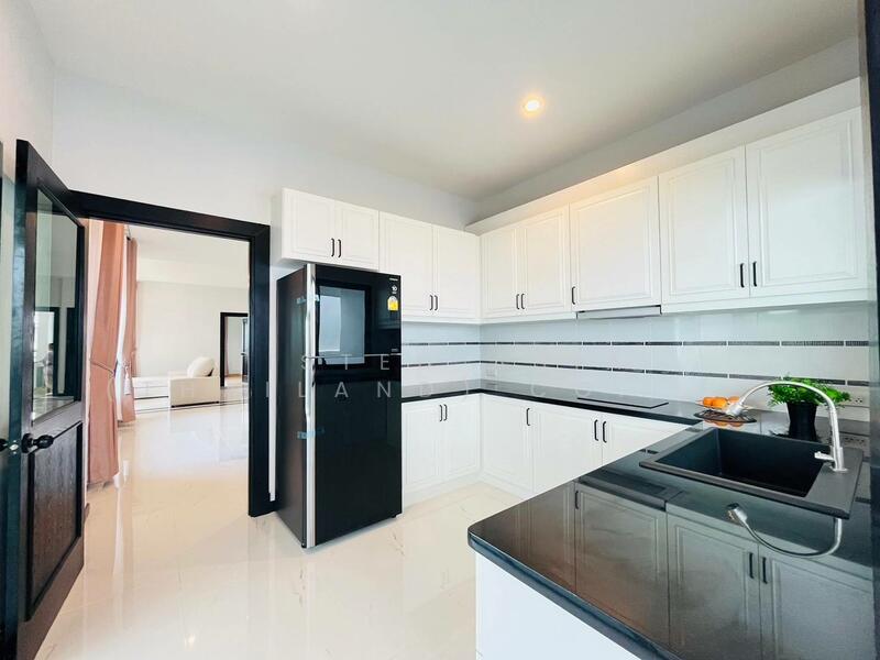 This house is located in a peaceful gated community, offering a spacious living area of 188.45 Sqm. on a 347.2 Sqm. land plot The house comes fully furnished, featuring a comfortable living room with a sofa, a built-in European kitchen with ample storage, and a dining table perfect for everyday meals. The 3 well-designed bedrooms come with wardrobes for convenient storage. Outside, the property has a small garden, providing a refreshing green space, and a covered car park for added convenience.