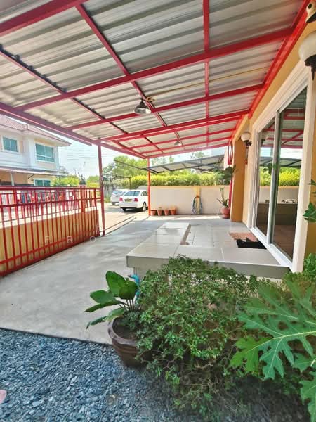 บ้านสภาพดีพร้อมอยู่ ต่อเติมหลังคาที่จอดรถ พร้อมปูพื้นกระเบื้อง