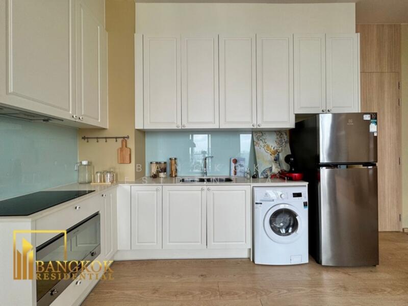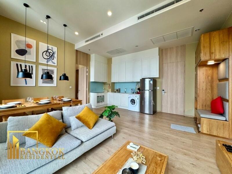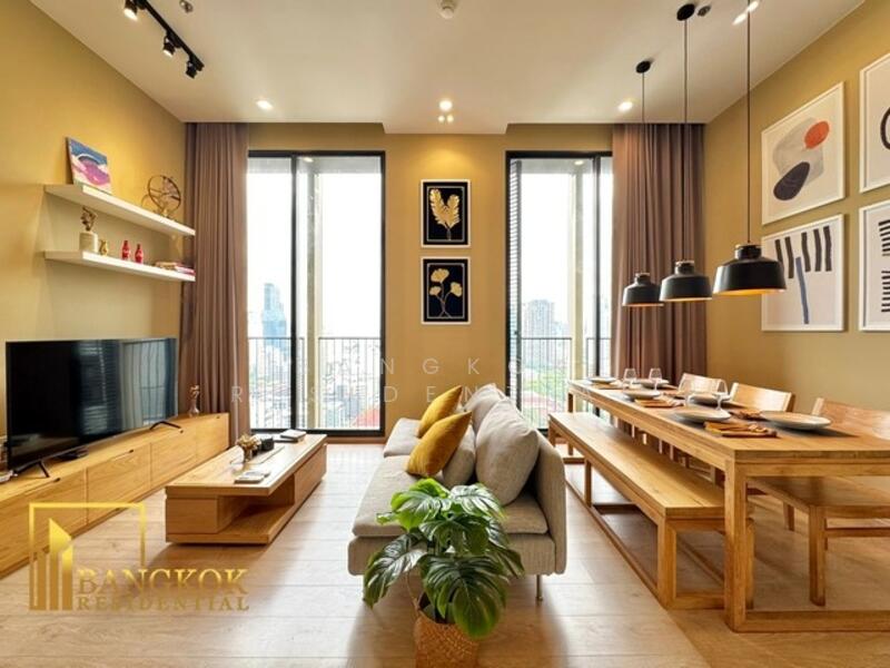 This charming 2 bed condo at Noble BE19 is available for rent 62,000 Baht per month. This high-rise property offers 70 sqm of beautifully designed space on a high floor, featuring harmonious decor and modern furnishings that create a serene and stylish atmosphere.