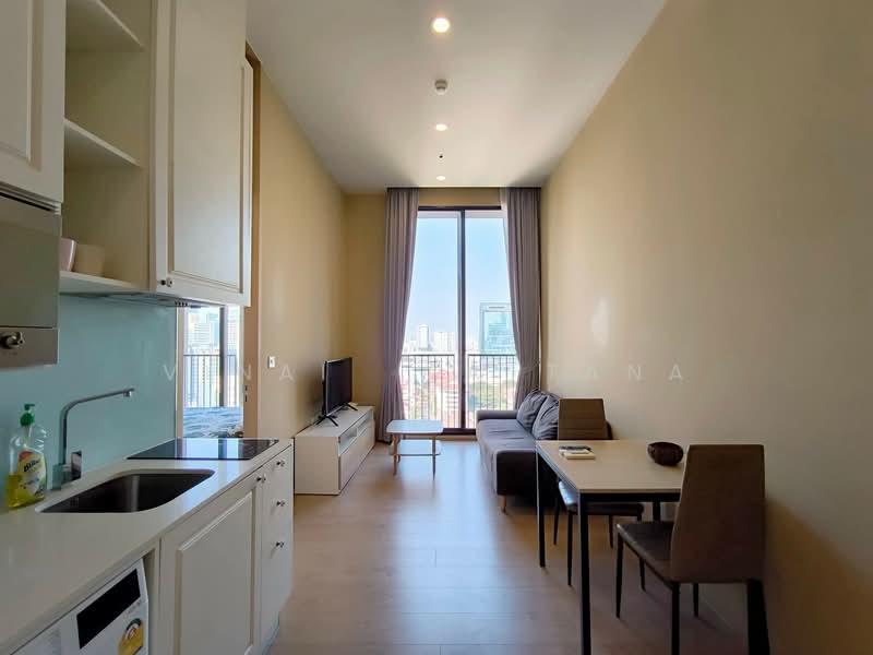 Fully furnished 1 bedroom, 1 bathroom condo for rent with a floorsize of 34 squaremeters, located on the 18th floor, at Noble Be