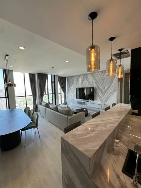 Fully furnished 2 bedrooms, 2 bathrooms condo for rent with a floorsize of 121 squaremeters, located on the 42nd floor, at Noble