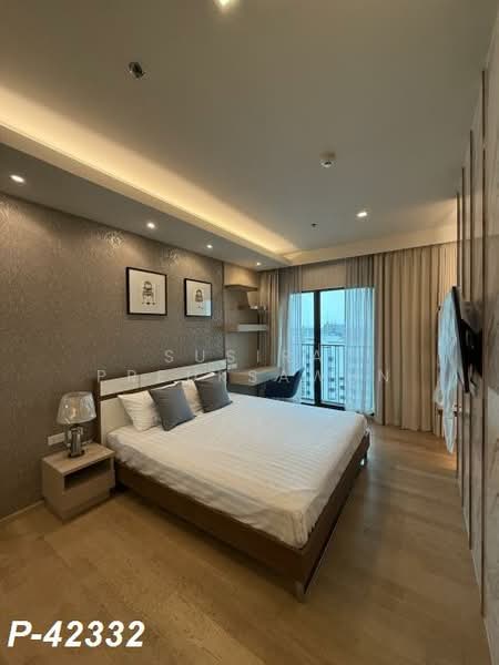 This 52 sq.m. unit on the 21st floor features 1 bedroom and 1 bathroom, decorated in a Modern Luxury style with complete furniture and appliances: