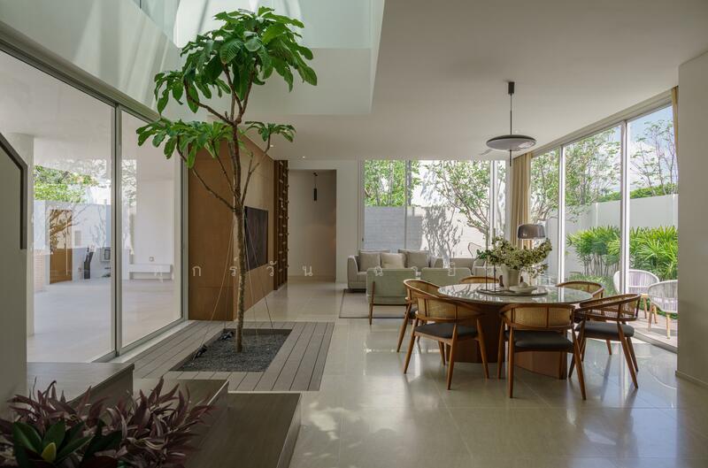 Noble TERRA Rama 9 - Ekamai (Noble Terra Rama 9 - Ekamai) can be said to be another interesting Super Luxury project from Noble. It was launched with a design concept that is very unique and unique. 'Oneness with Nature' allows us to experience and be as close to nature as possible. By planting a large tree inside the house. There is also a large triple volume Void channel in the center of the house. The starting selling price is 45 - 100 million baht. Other interesting highlights of the project are as follows. The design of the home's unique functions is like no other, inserting green space into various points within the house. and brings us close to nature in every function Especially the Inner Court area which is in the center of the house. Large triple volume void channels connect all floors together. In addition to increasing family interaction, Also adding more light inside the house. and makes it possible to see the tree in the middle of the house at all times as well The units are small and have privacy. The location in the heart of Rama 9 is highly fertile. Traveling in and out of the city is convenient.