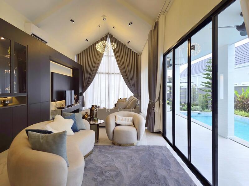 modern living at the Nordic Pool Villa Pattaya – Mabprachan Lake, located only 400 meters from the reservoir. Set on 158 square wah of land, this residence offers a spacious and elegant design with a private swimming pool measuring 12×3.5 meters and parking for up to five cars within the property.