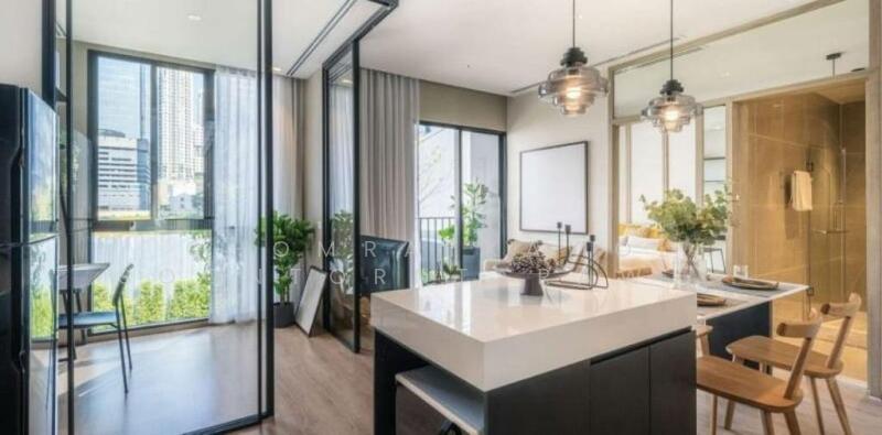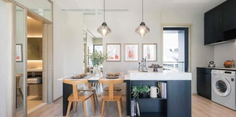 This contemporary 1 bedroom, 1 bathroom condo offers 34.8 square meters of well-planned space in Nue District R9, Huai Khwang, Bangkok. It sits on a high floor of a 41-storey freehold project with a bright, modern interior and a partially furnished layout.
