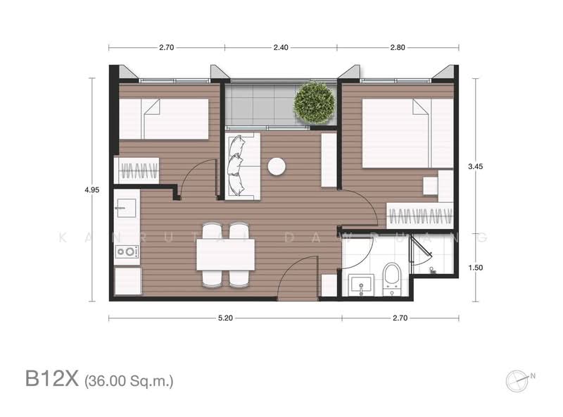 Floor size of this unit at NUE Epic Asoke-Rama 9 is 36 sqm.