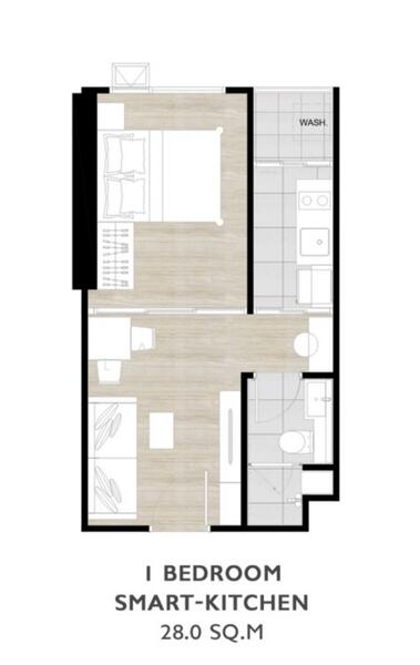 Floor size of this unit at Origin Play Bangkhunnon Triple Station is 28 sqm.