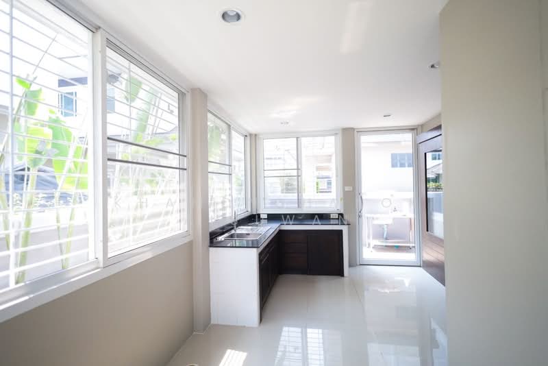 The home features built-in Western and Thai kitchens, balcony, landscaped garden, side pavilion, waterfall curtain, and fish pond, creating a relaxing private lifestyle. Fully repainted and equipped with air conditioning, CCTV, remote-controlled gates, water tank, and landscaped trees, this property is move-in ready.