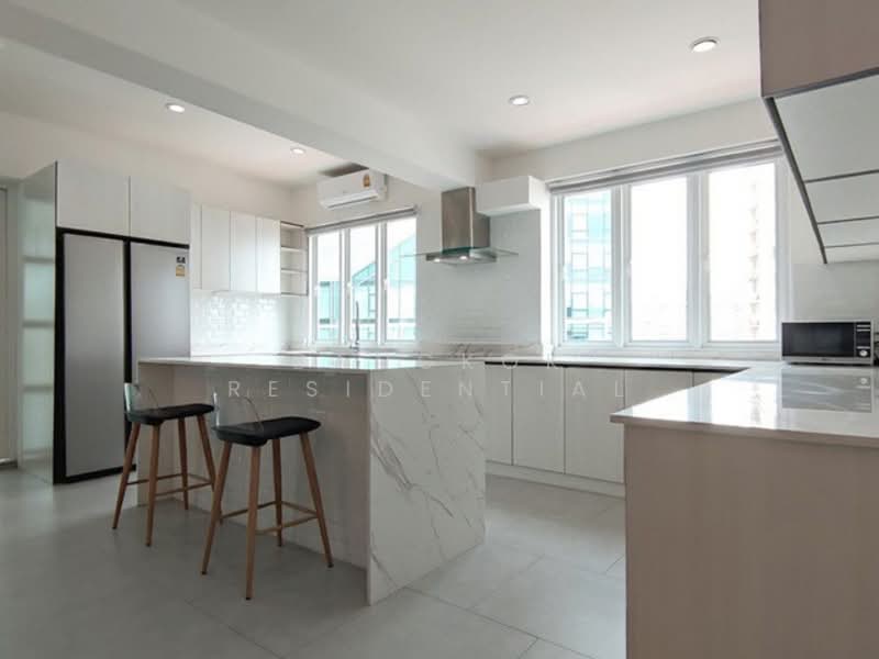 This renovated 3 bedroom apartment in Thonglor offers 350 square meters of generous living space and features a large private balcony that extends the living area and creates a relaxing outdoor setting. The apartment comes fully furnished with stylish and comfortable décor, combining spacious interiors with a welcoming atmosphere.