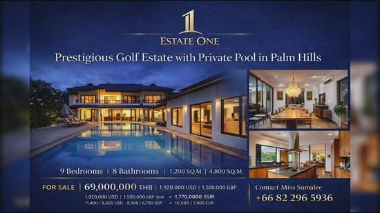 The sale price of this unit at Palm Hills Golf Club and Residence is ฿69,000,000.
