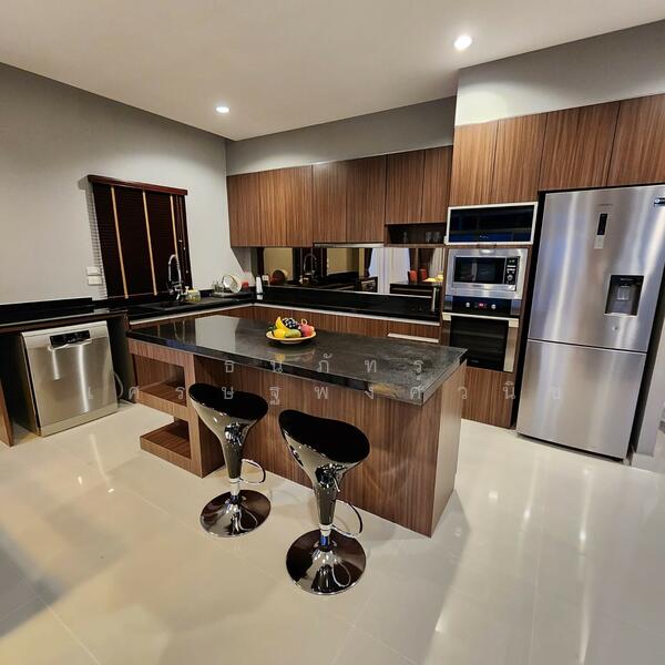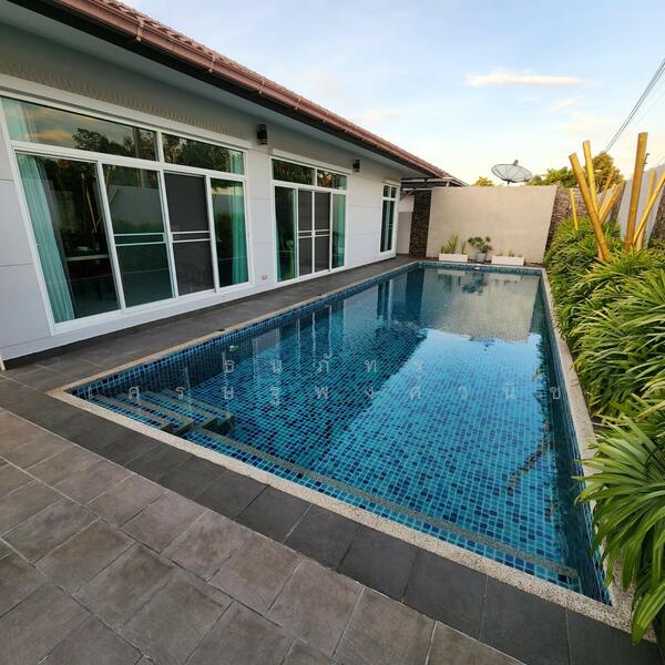 Panalee Banna Village Panalee Banna village exudes timeless charm with its captivating blend of simplicity and modern architecture. Nestled amidst breathtaking natural surroundings, this village boasts an array of beautifully designed houses that epitomize exemplary craftsmanship. One such house stands out, a single-floor marvel that showcases the pinnacle of contemporary design. Upon entering, you'll be greeted by flexible living spaces that seamlessly flow together, creating an inviting and versatile atmosphere. With three spacious bedrooms and two elegant bathrooms, this house offers both comfort and style. Additionally, a dedicated working space provides the perfect environment for productivity, while a well-appointed dining area beckons for shared meals and cherished memories. The kitchen serves as the heart of the home, boasting exquisite marble surfaces and state-of-the-art Hafele appliances. An island breakfast bar offers a convenient spot for casual dining or entertaining guests. As you glide through the glass doors, a mesmerizing backyard garden unfolds before your eyes, providing a peaceful sanctuary and enchanting views of the surrounding nature. Panalee Banna village invites you to experience the harmonious fusion of contemporary design and natural beauty, offering a truly exceptional living environment for those seeking the perfect blend of style and tranquility.