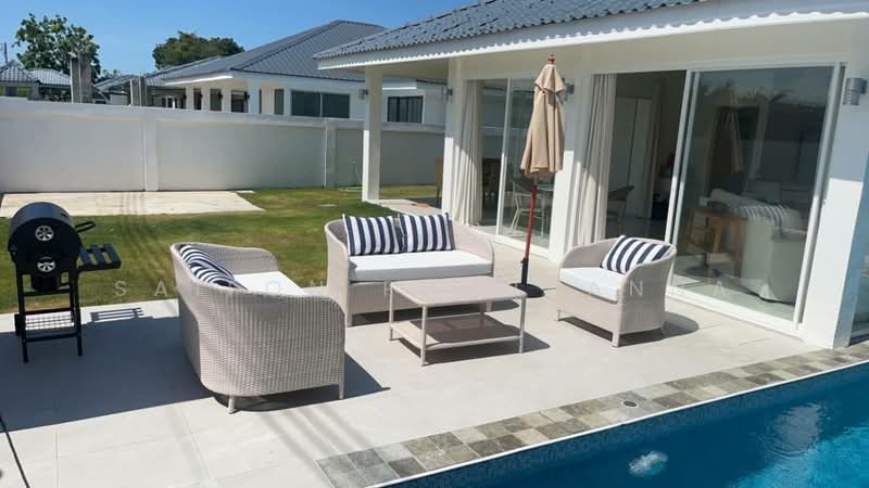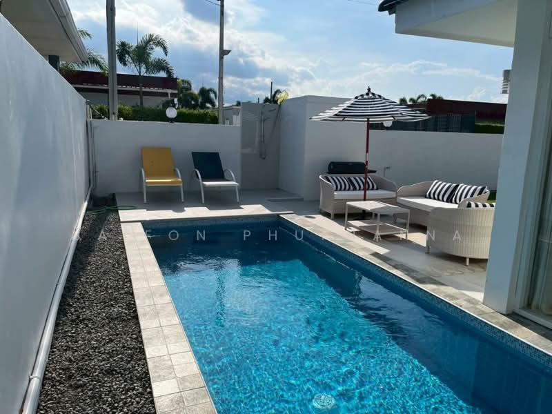 The open-plan living area flows effortlessly to the private terrace and swimming pool, offering the perfect setting for both relaxation and entertaining. Located in a peaceful yet convenient neighborhood, this villa combines comfort, style, and excellent access to Hua Hin’s top attractions.