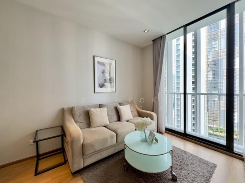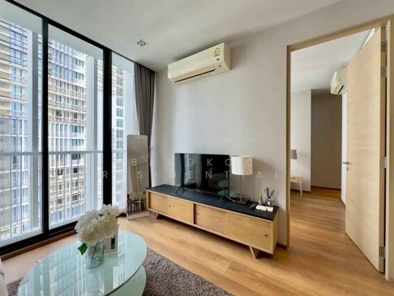 This modern 2 bedroom condo for rent in Park 24 is available at 42,000 Baht per month, offering 55 square meters of efficiently designed living space on a high floor. Fully furnished with contemporary pieces, the unit provides a comfortable and stylish atmosphere ideal for urban living. The layout makes the most of its compact size, featuring a bright open-plan living and dining area, a sleek kitchen, and two well-proportioned bedrooms with built-in storage and thoughtfully chosen decor.