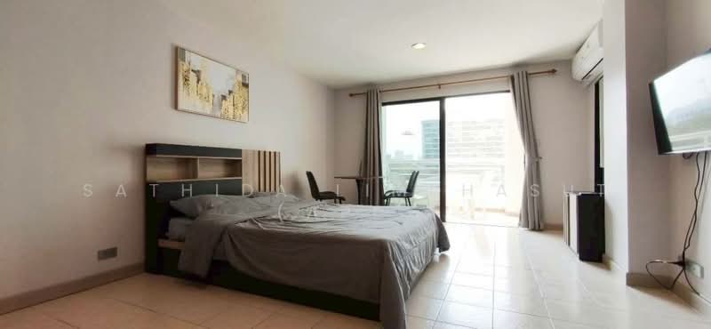 This is Studio, 1 Bathroom Condo for Rent in Pratumnak, offering 42 Sqm of living area, located on the 2nd floor comes full furnished, fitted kitchen, microwave, refrigerator, dining table, living area with flat screen TV, built-in wardrobe, and balcony with city view and partly sea view.