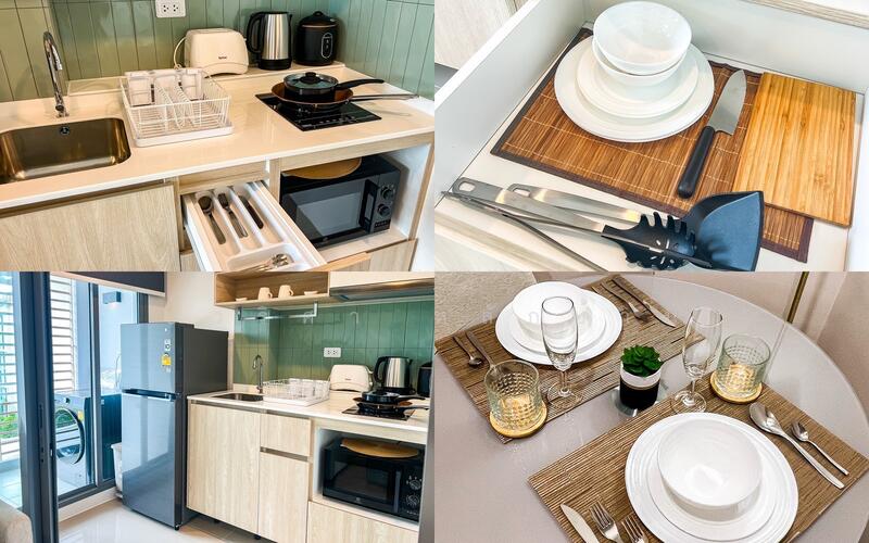 •Appliances included in the unit: 2 Air Conditioners / Refrigerator / 43” Smart TV / Washer-dryer / Water heater / Microwave / Electric stove / Exhaust hood / Rice cooker / Kettle / Toaster / Iron / Hair dryer / Table lamp / Floor lamp