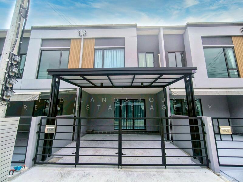 For rent: 2-story townhome in the Pleno Sukhumvit-Bangna 2, Good location, just 3 minutes from Mega Bangna. Fully furnished, with an awning in front of the house. Flooring and a roof for the awning at the back of the house. ready to move in.