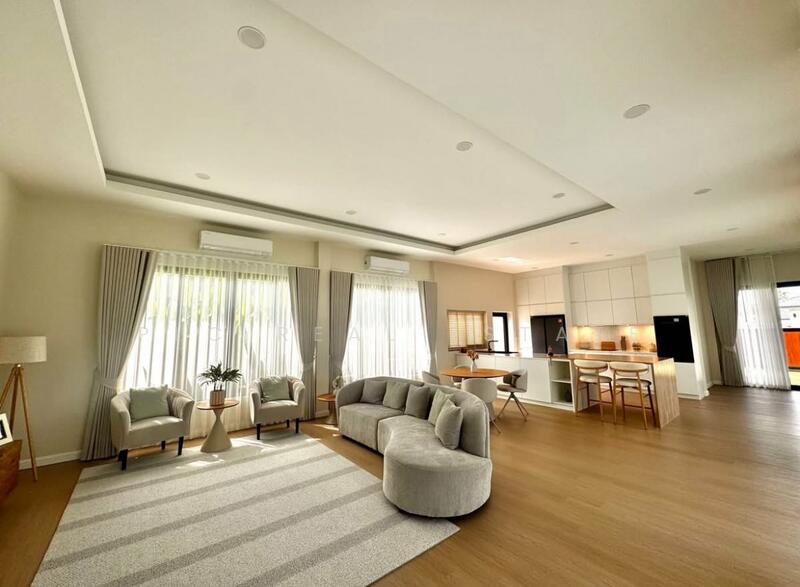 The villa showcases a contemporary design with generous proportions and a seamless open-plan layout that enhances space, light, and airflow. Floor-to-ceiling openings connect indoor living areas to the private swimming pool, creating a resort-style atmosphere that feels both elegant and relaxed. High-quality furnishings and tasteful finishes elevate the overall ambiance, delivering a move-in-ready living experience with a strong sense of comfort and exclusivity.