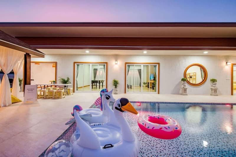 Experience relaxed tropical living in this beautifully designed 4-bedroom, 4-bathroom pool villa located in the peaceful Thap Tai area of Hua Hin. With 200 sq.m of interior space, this home offers generous living areas ideal for families or those who enjoy spacious comfort.