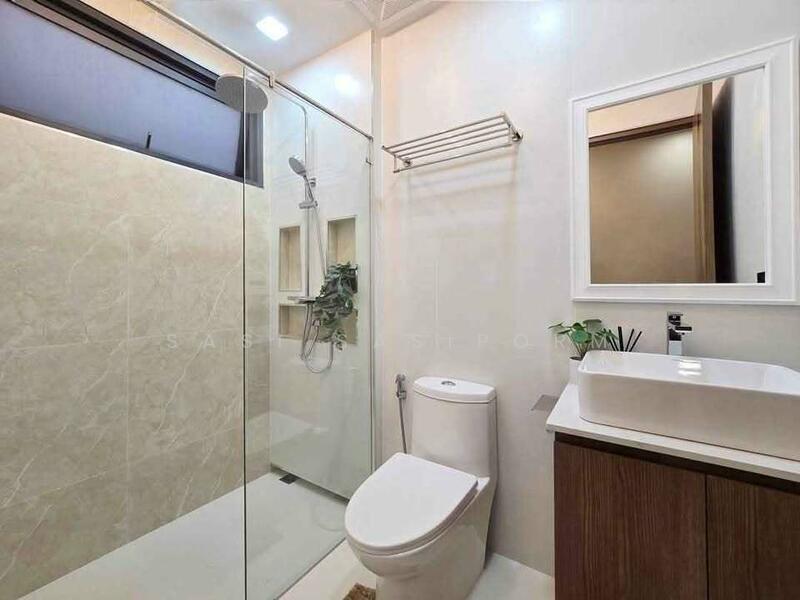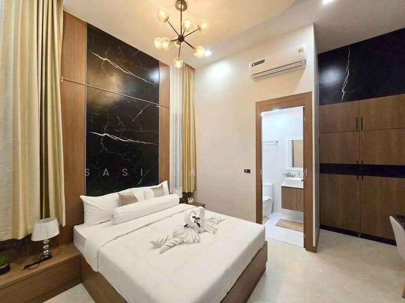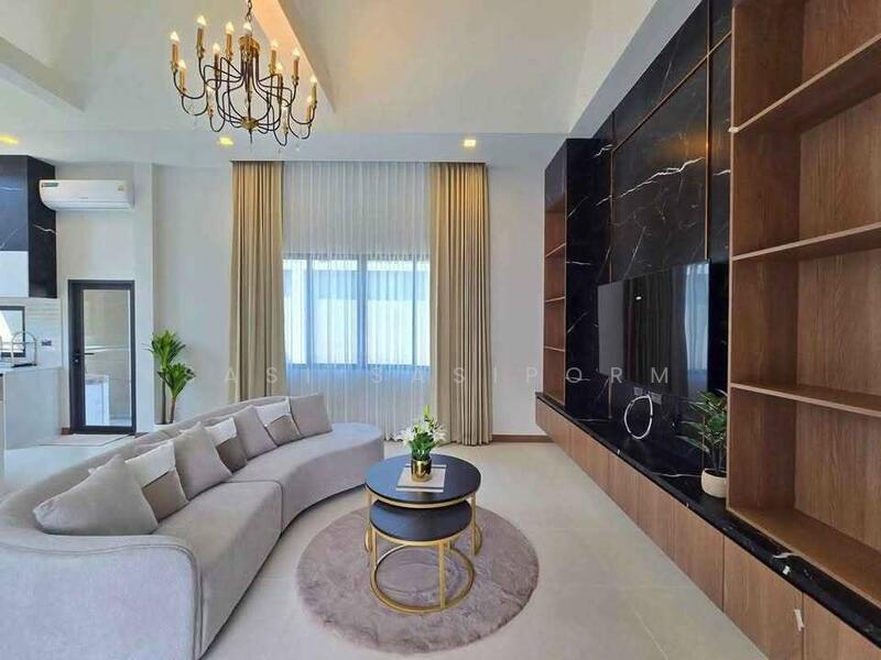 Nestled on a 100 sq.wah plot, the villa features a modern open-plan living area, complete with a built-in kitchen with an island, making it perfect for both everyday living and entertaining. The expansive garden and private 8x3 meter swimming pool create a serene retreat, ideal for relaxation and outdoor activities.