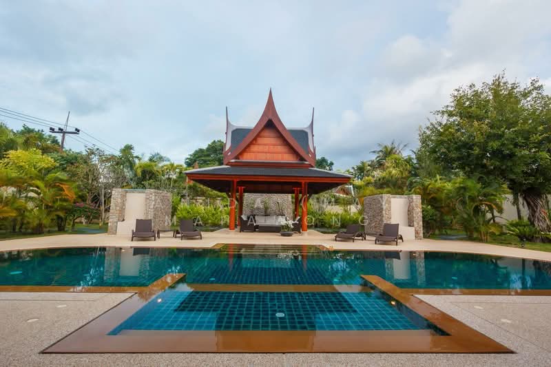 Set in one of Phuket’s most prestigious neighborhoods, this 6-bedroom, 8-bathroom pool villa on 2,442 sqm of freehold land in Cherng Talay is a rare sanctuary of space and privacy. Just minutes from Bang Tao Beach, Laguna, and Boat Avenue, the estate blends tropical Thai-Balinese charm with practical living.