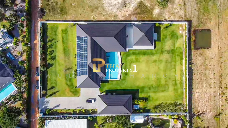 Paradise View is a truly unique, once-in-a-lifetime luxury estate offering complete privacy, sustainability, and uninterrupted panoramic mountain views. Set on an expansive landscaped plot just under one acre, this exceptional property combines resort-style living with modern self-sufficiency in a sought-after expatriate area close to golf courses, beaches, and Hua Hin town — with no maintenance fees.