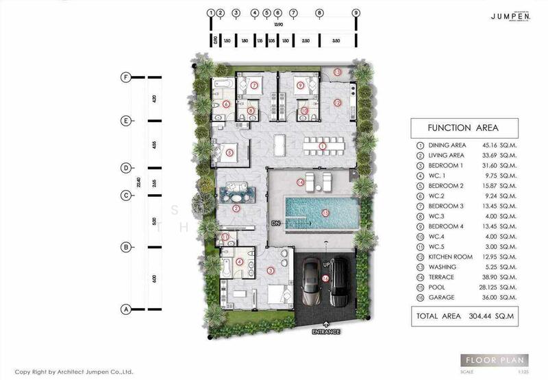 Floor size of this unit at Pre sale price 29 Mb Luxury villa near Jomtien Beach. is 305 sqm.