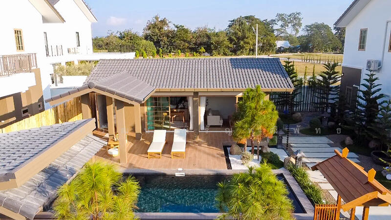 Discover tranquil luxury in this spacious two-story house, thoughtfully designed with Zen Japanese influences and set in a peaceful residential enclave of Doi Saket, Chiang Mai.