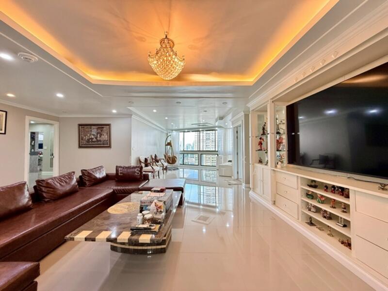 This large 2 bedroom condominium in President Park offers 263 square meters of usable space on a high floor, providing a bright and comfortable living environment. The fully furnished unit features elegant décor that combines modern style with warm, inviting touches, creating a sophisticated yet welcoming atmosphere throughout the home. Spacious living and dining areas, along with generously sized bedrooms, make it ideal for both everyday living and entertaining.