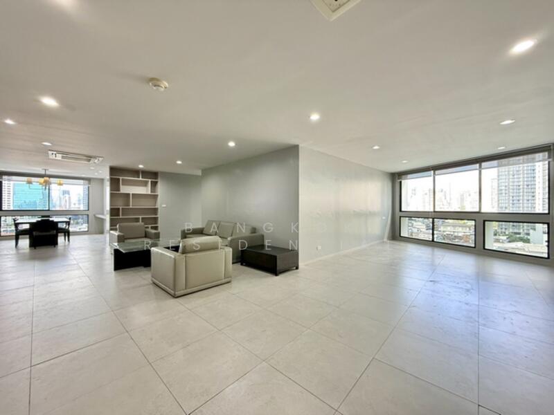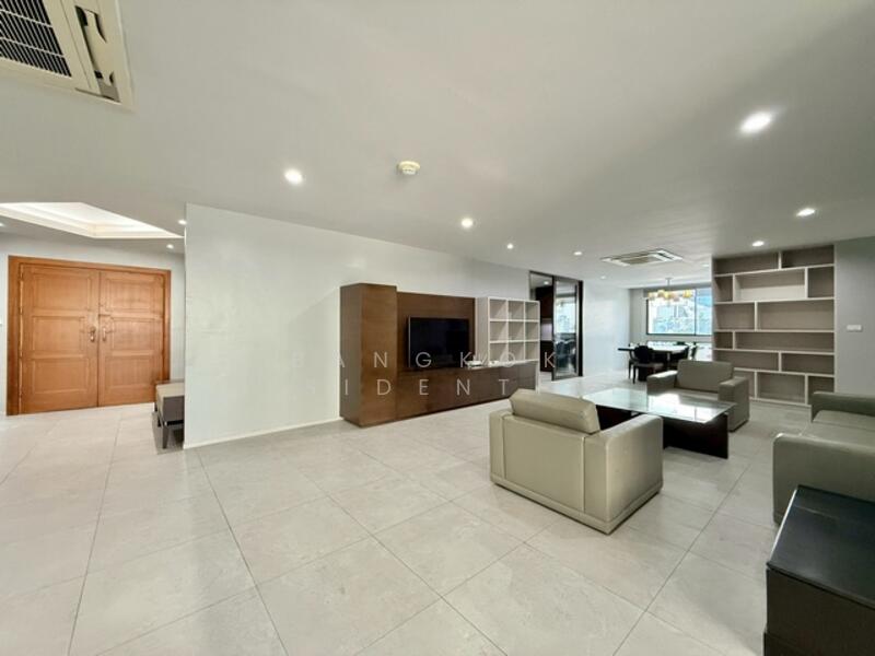 This spacious 3 bedroom condo in President Park, located in the sought-after Sukhumvit 24 area, offers 225 square meters of usable space on a comfortable mid-level floor. The unit comes fully furnished with tasteful decor that blends modern style with warm, inviting touches, creating a cozy yet elegant living environment.