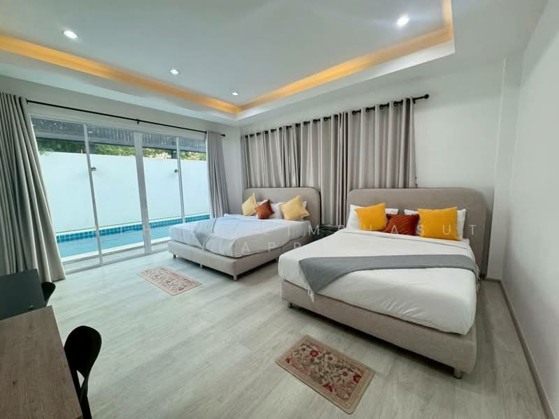 This is 4 Bedroom, 4 Bathroom Villa for Rent in Huay Yai, sitting on 355.2 Sqm of land plot size, 249 Sqm of usable area, comes full furnished, European kitchen with dining area, open plan living area with comfotable sofa, flat screen TV, built in wardrobe, en-suite bathroom. Spacious outdoor area featuring a private simming pool.