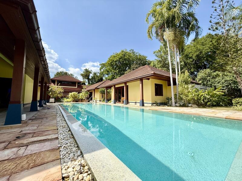 The house sits on a generous land plot of 1.2 rai, offering wide outdoor space and a calm resort-style atmosphere. In addition, landscaped gardens and surrounding greenery create a peaceful and private environment suitable for long-term living.