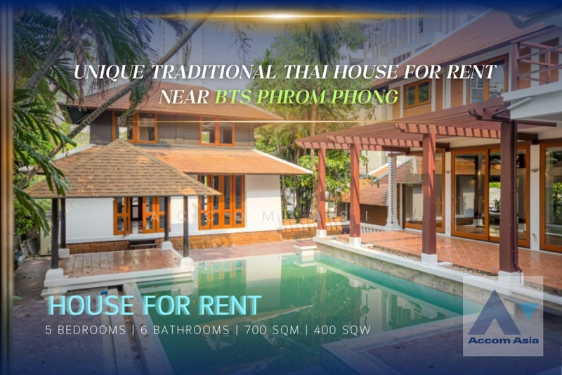 Private Swimming Pool Unique traditional Thai House For rent, near BTS Phrom Phong, Bangkok