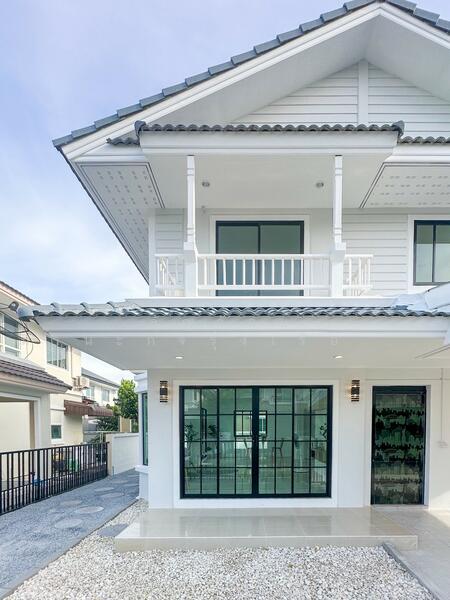 House Details You'll Love: This two-story single house in the quality project from Land & Houses, Pruksa Lada Tha Kham-Rama 2, is ready to delight your family with its spacious living space and surrounding garden, creating a relaxing atmosphere.