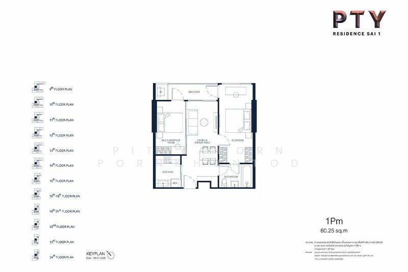 Homely 1 bedroom, 1 bathroom condo for sale with a floorsize of 60.25 squaremeters, located on the 24th floor, at PTY Residence