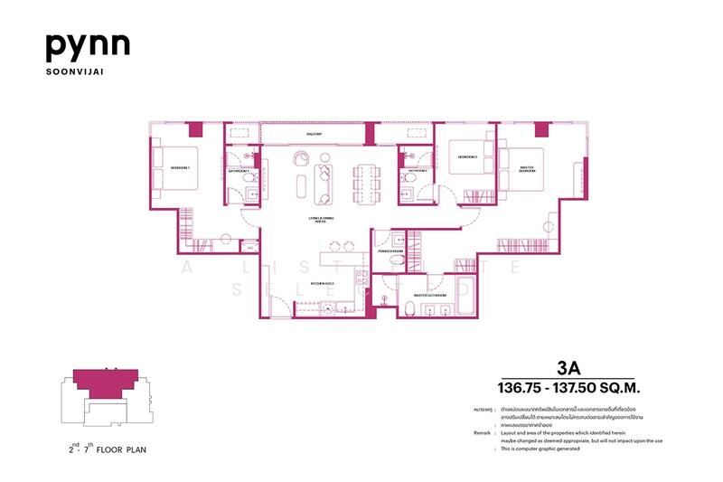 Floor size of this unit at PYNN Soonvijai is 137 sqm.