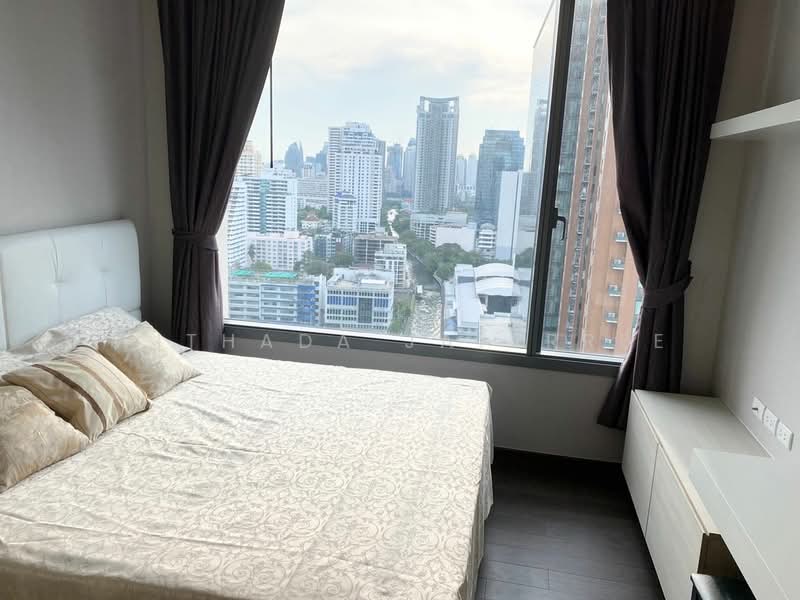 Modern 1-bedroom 1-bathroom condominium on the 23th floor of Q Asoke building, in the international Ratchathewi district, close to