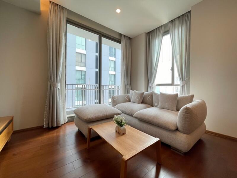 This lovely 1 bedroom condo for rent in Thonglor is available at 45,000 Baht per month. With 58 sqm of usable space, this fully furnished unit boasts contemporary decor and an impressive city view, creating a perfect blend of style, comfort and urban sophistication.