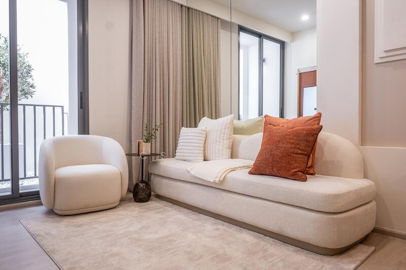 Reference Ekkamai (Reference Ekkamai), a newly opened condo in the heart of Ekkamai area. This is the second Reference brand condo project that caters to working-age people who love beautiful, classic designs. 1 Bedroom, starting price 5.99 million baht. Initially, we have summarized interesting points as follows: Location – In the heart of Ekkamai, opposite Healthland, near Thonglor Soi 10 (Donki Mall), it is considered a lifestyle area that is easily connected to both Ekkamai and Thonglor. In addition, the project also provides a shuttle service to Thonglor-Ekkamai BTS Station. Contemporary design – combining the charm of traditional houses with the modernity of today. There are many corners that give the atmosphere of an art gallery. It can be called an Instagrammable Place. Fully Furnished – First, let’s take a look at the various furniture provided in the room, which is beautifully designed. It is furniture that is like a decoration in itself. There are also Decorate Items from the Norse Furniture brand that are given as Special Privilage during the project launch, compensating for some material specifications that would be even better if they were a bit more complete. Private, not many units per floor – quite private. The number of neighbors per floor is not many, only 10-11 units, less than most projects in the same price range. Service Offering – such as services from MUVMI, Allianz Ayudhya health and accident insurance, Cleaning Package, Concierge Service, etc. Pet Allowed – Some floors allow pets to be kept openly, but there are no facilities for pets.