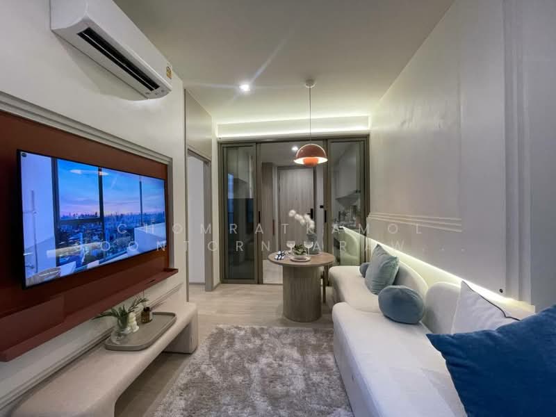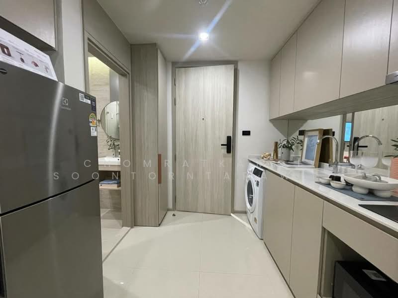 This 34.55 square meter condo offers a modern city home in Khlong Tan Nuea, Wattana, Bangkok. It is a new development unit in Reference Ekkamai on the 16th floor with freehold ownership. The layout presents an open-plan living, dining, and kitchen area plus one bedroom and one bathroom.