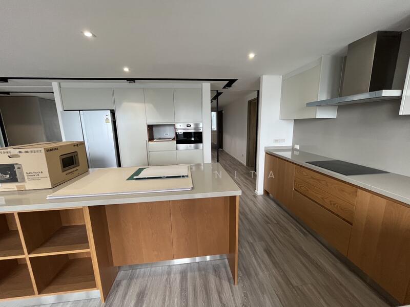 A condominium in the heart of Bangkok near Ekkamai BTS station, expressway linking to internatonal airport, restaurants and international school, wooden floor, pleasant living and dining area, western style kitchen.